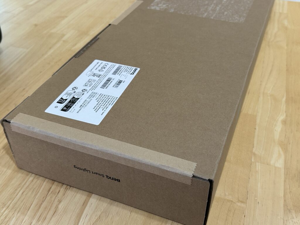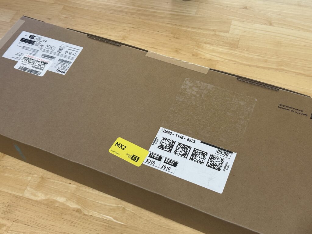 Amazonで購入をしましたが、BenQは相変わらず外箱に伝票が直接貼られる形です。気になる方はAmazonでギフト梱包で注文すると良いかもしれません。